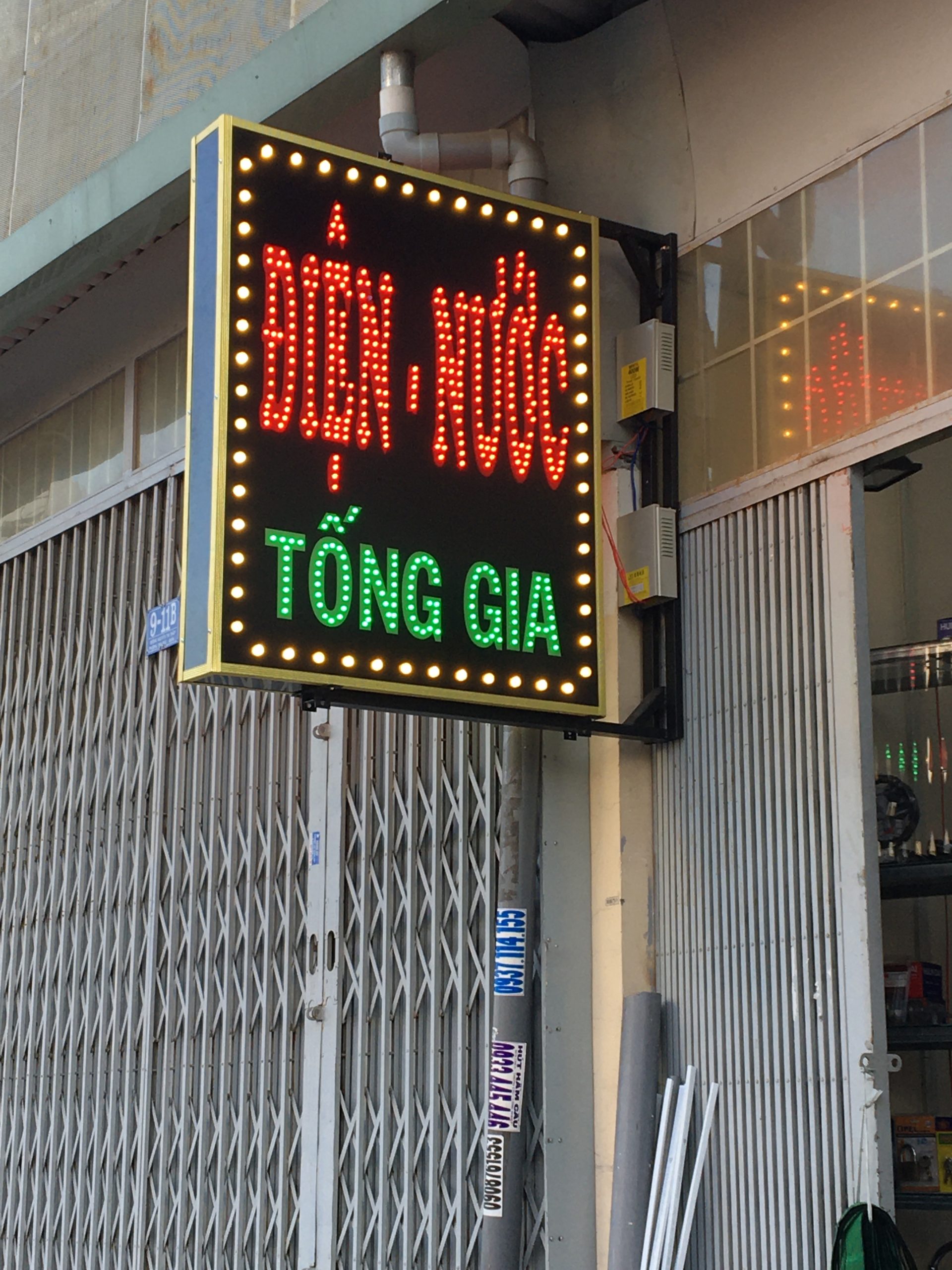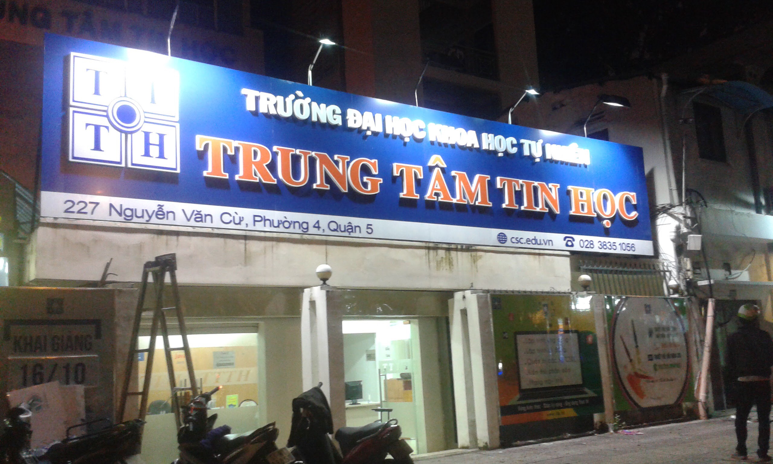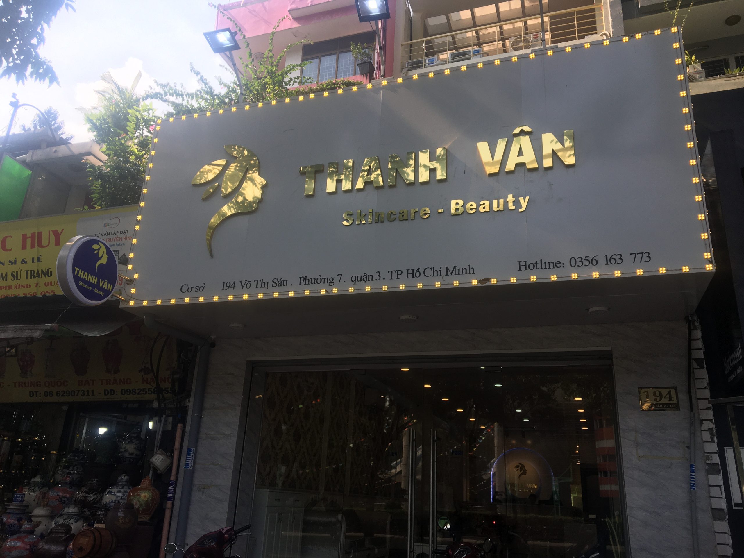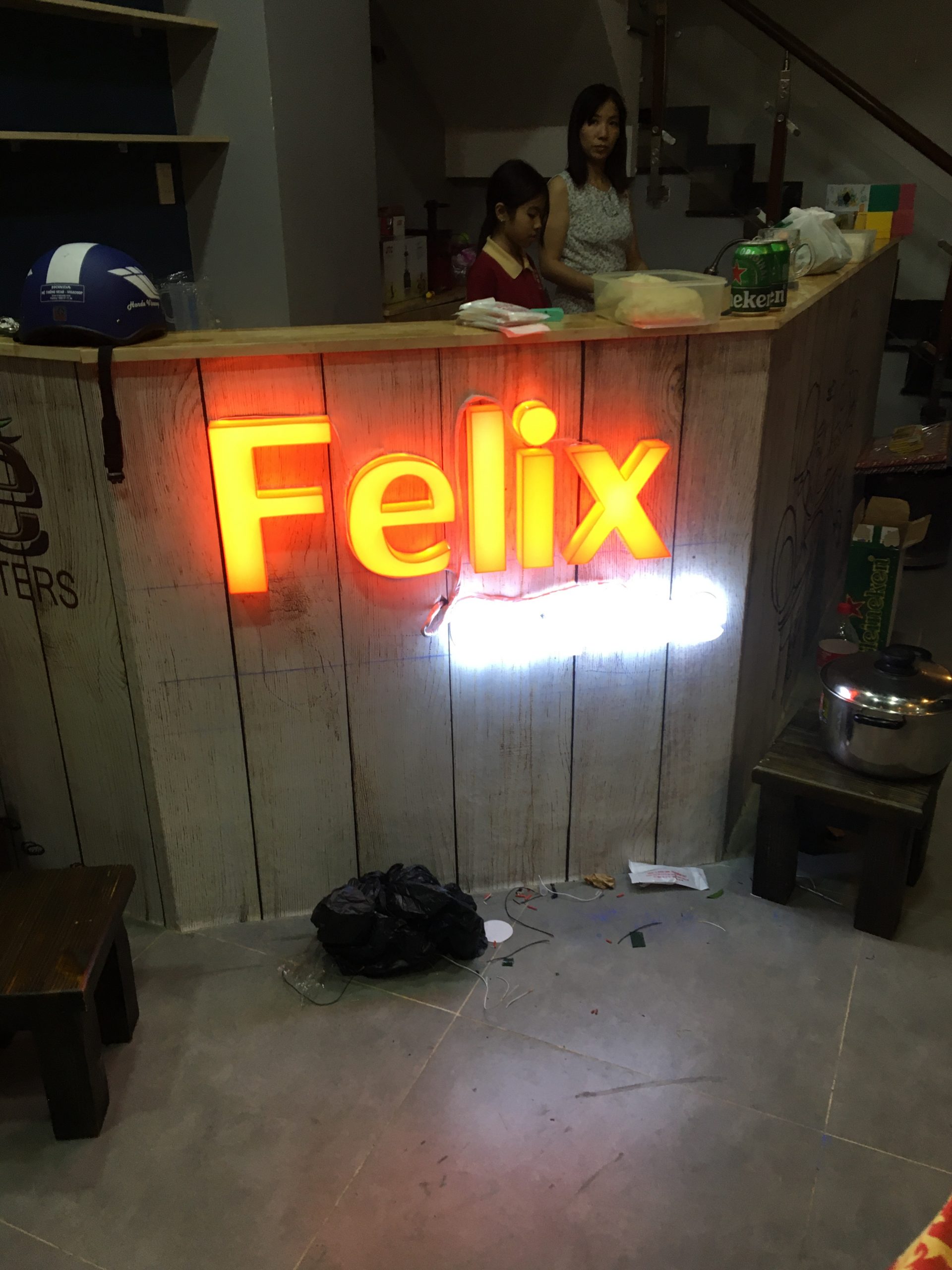 • Bảng hiệu alu chữ nổi Inox vàng sáng đèn hắt chân